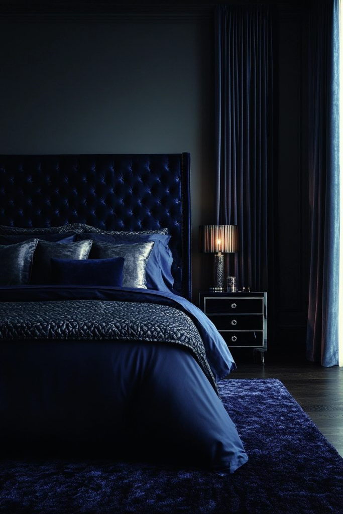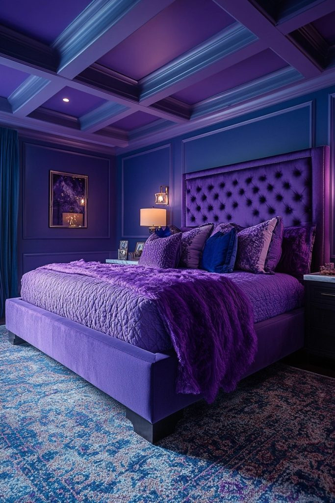 Mystic Indigo intensely focuses on deep blue with captivating violet accents to craft a rich and profoundly mysterious boho bedroom. This palette is ideal for creating a space that feels both regal and incredibly intimate. Satiny textures and smooth, glossy surfaces can reflect light and add significant depth to the dark, rich colors. Subtle patterns within the same color family can add compelling interest without ever overwhelming the space.