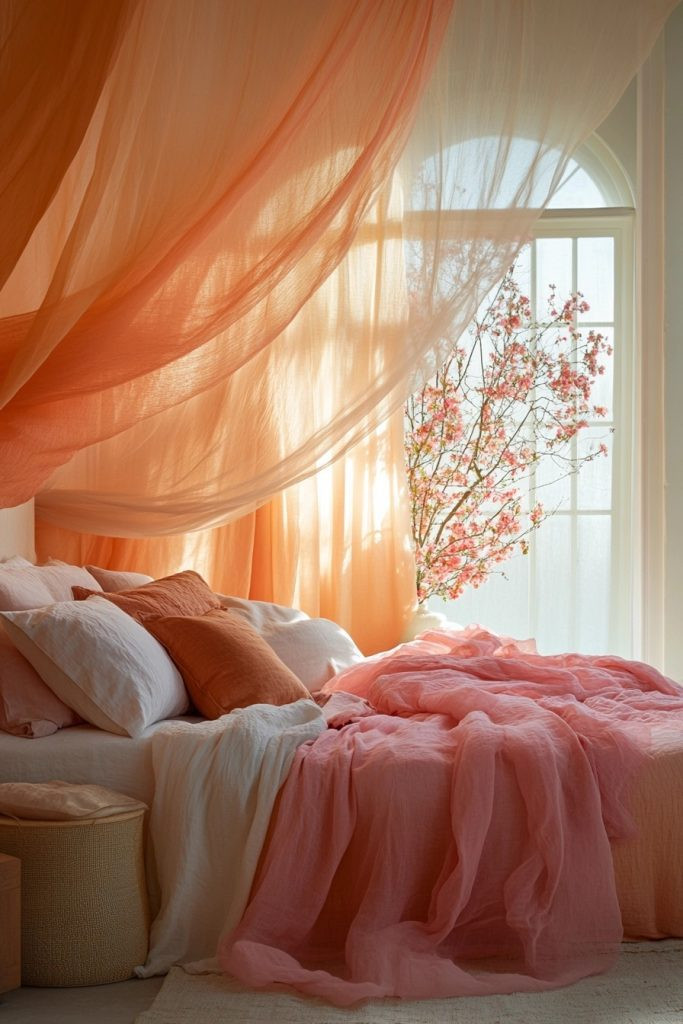 The Sunset Serenity palette features warm oranges and soft pinks that beautifully capture the peaceful essence of a sunset in a boho bedroom. These colors are ideal for creating a wonderfully soothing atmosphere that strongly encourages relaxation and thoughtful reflection. By integrating soft textures like plush velvet or smooth silk in these inviting hues, your bedroom instantly becomes a serene escape. Subtle accents in gleaming gold or warm copper can further enhance the warmth of the palette, adding a touch of luxurious elegance.