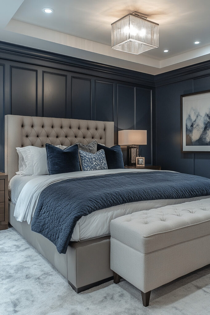 Step back in time with an Art Deco dream bedroom featuring geometric patterns, luxurious fabrics, and glamorous finishes. This style blends vintage charm with modern luxury, making it perfect for a basement makeover. Use striking colors like gold and black to create a dramatic and sophisticated effect. This basement bedroom idea is ideal for anyone who adores elegant and timeless designs.