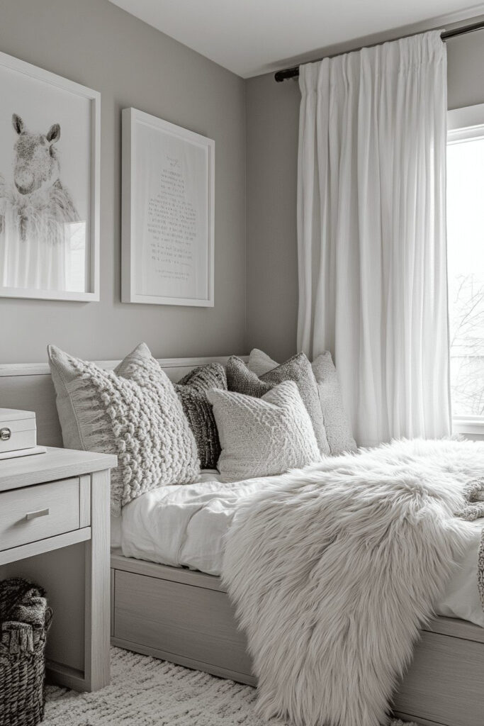 22. Monochrome Dream Kids Bedroom