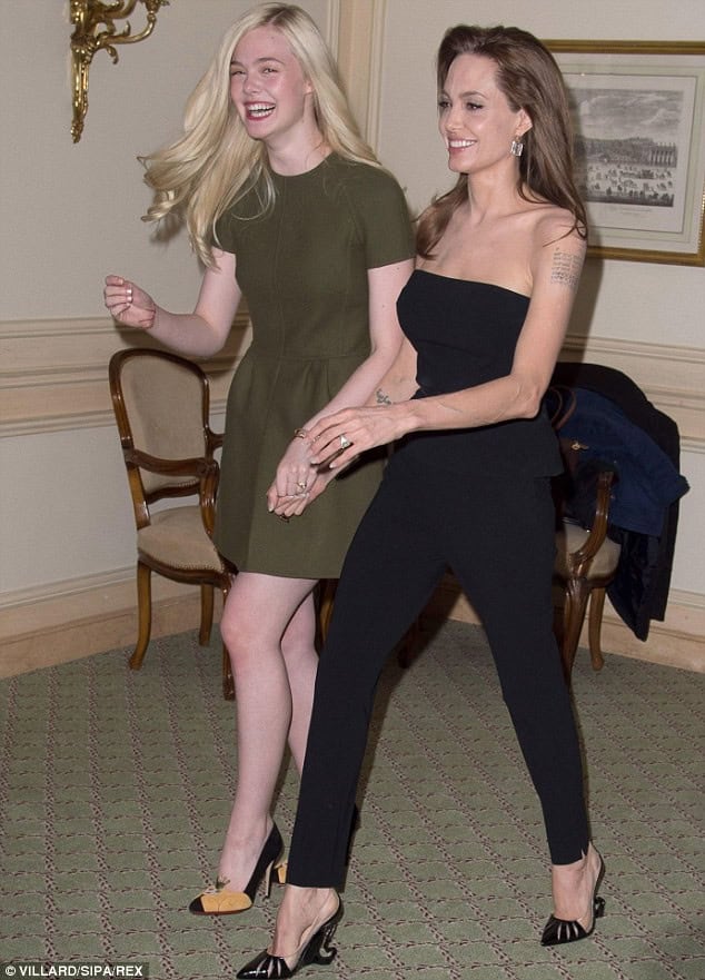 Angelina Jolie and Elle Fanning Stun in Themed Outfits at Paris ‘Maleficent’ Event