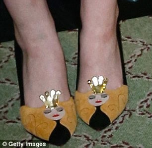 Elle Fanning, her 16-year-old co-star, also embraced the film’s theme with her footwear choice. She arrived wearing yellow and black pumps adorned with a cartoon queen moti and a gold crown.