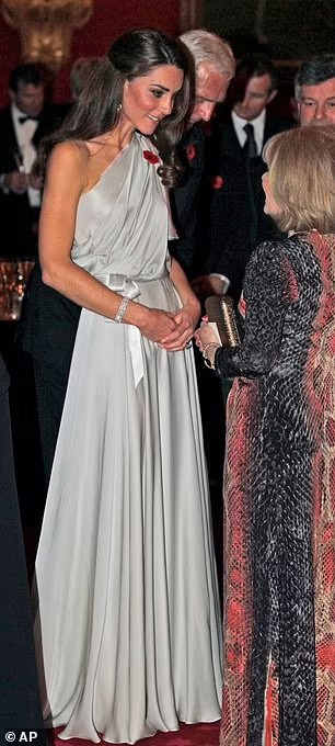 The striking parallels between their fashion choices date back to 2011 when Kate wore a silver asymmetric Jenny Packham gown that closely resembled a dress Angelina Jolie had worn earlier that year.