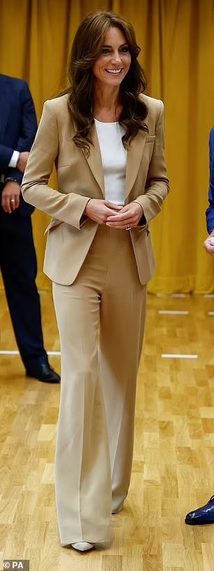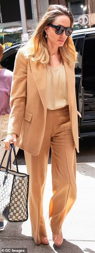 In August 2023, Angelina was seen in a chic camel suit with wide-leg trousers and a Celine leather tote. Just a month later, Kate wore a Roland Mouret trouser suit that was strikingly similar, complete with flared trousers and a neat camisole top.
