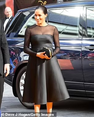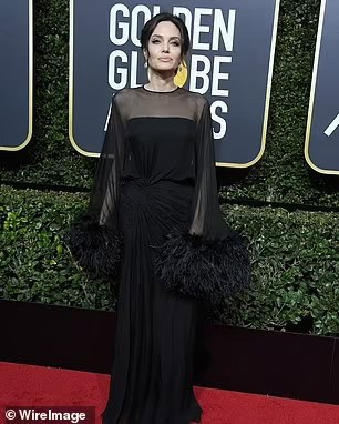 Another notable resemblance was Meghan’s Jason Wu dress at the Lion King premiere and Angelina’s Versace gown at the 2018 Golden Globes, featuring sheer panels and feather details.