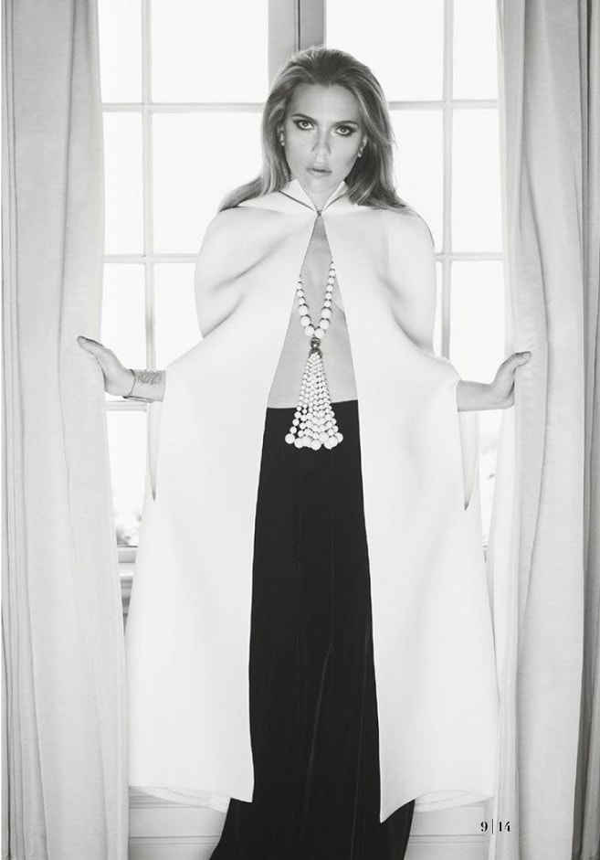 Photographed by the renowned fashion photographer Mark Seliger, Johansson poses in a luxurious studio setting adorned in exquisite designer attire.